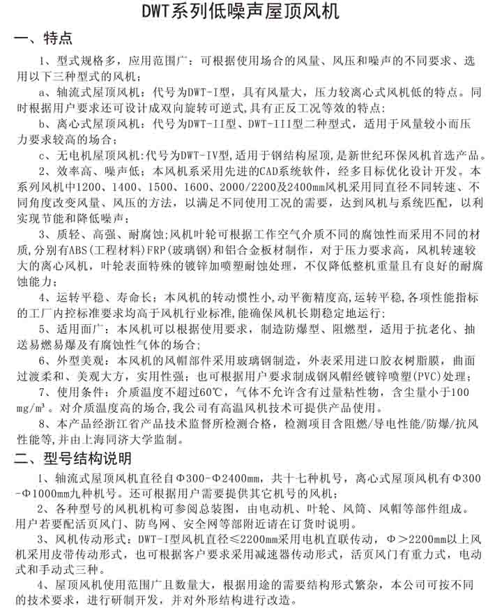 二、DWT-II、III 系列離心式屋頂風(fēng)機(jī)