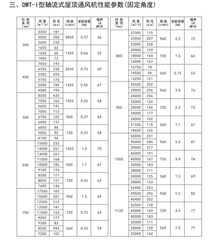 一、DWT-I 系列軸流式屋頂風(fēng)機(jī)