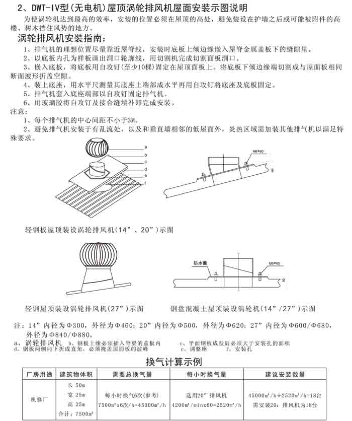 三、DWT-IV 系列無電機渦輪屋頂排風(fēng)機