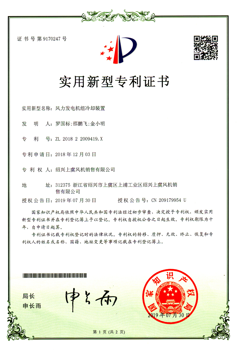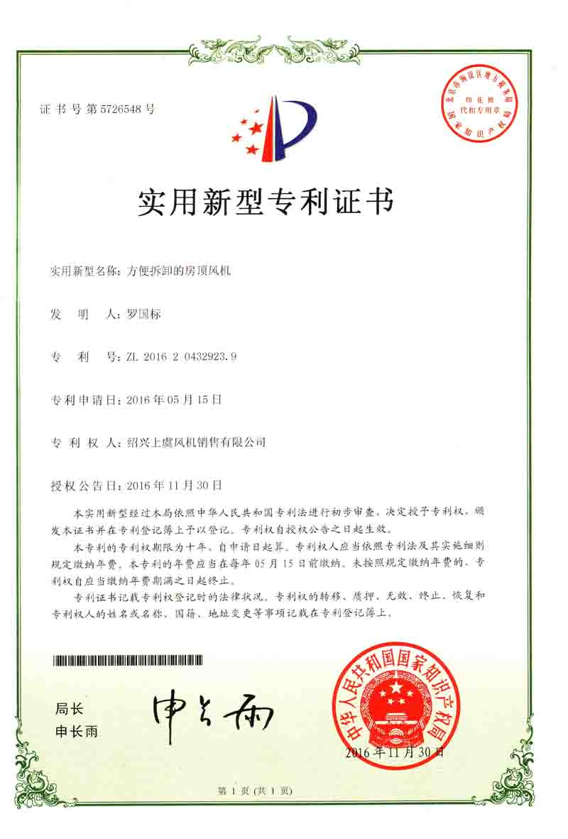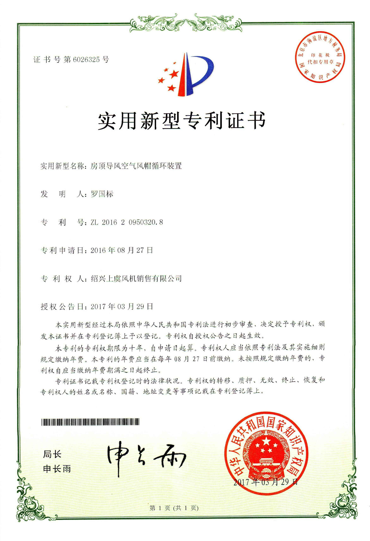 房頂導風空氣風帽循環(huán)裝置專利證書 |